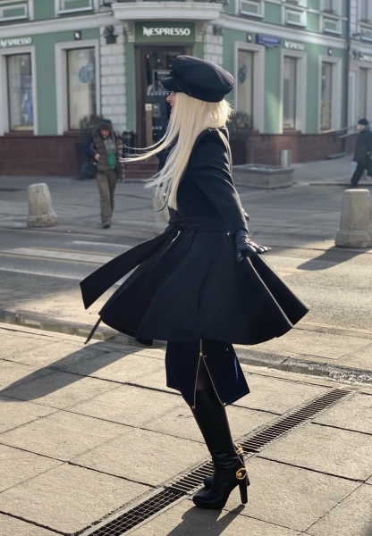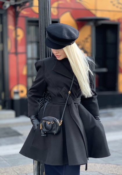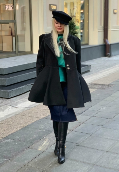 Элегантное пальто Miss Kelly от ELLA Abushkevich - выгодно подчеркивает изгибы женского тела и придает утонченность образу. Кокетливая юбка-солнце выполнена из двухстороннего материала, что добавит тепла в прохладную погоду. Эксклюзивная модель!