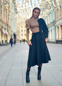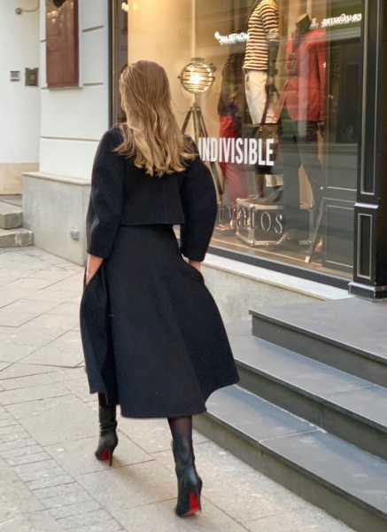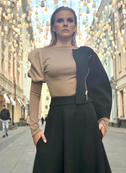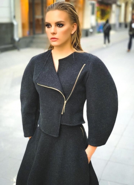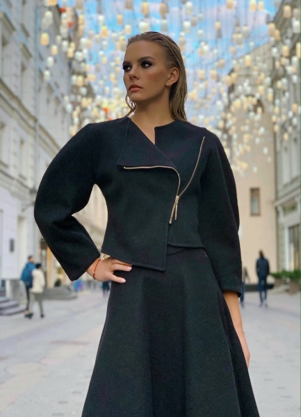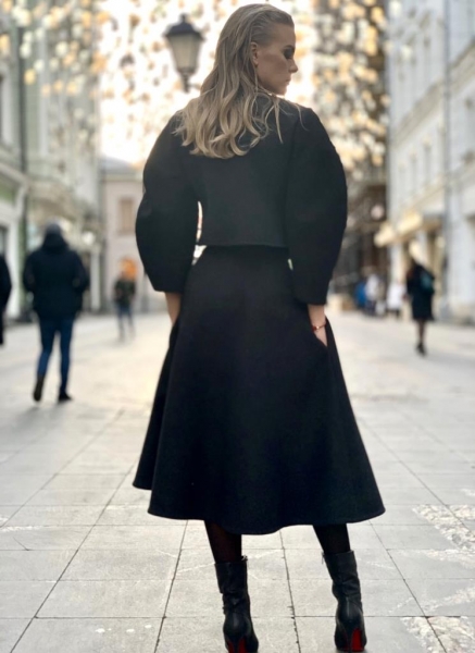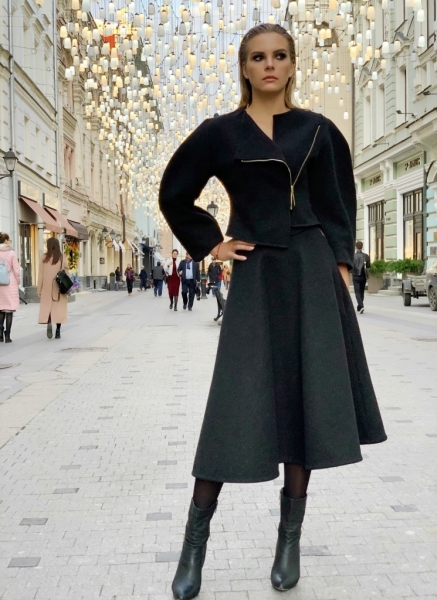 Французский образ от ELLA Abushkevich - это струящаяся юбка-миди, кардиган с пышными рукавами фонариком, куртка-косуха архитектурного кроя и берет с ручной вышивкой. Куртка-косуха выполнена из двухсторонней ткани, что делает ее еще более теплой. Весь образ подчеркивает изгибы женского тела и придает утонченность образу. Лимитированный тираж!