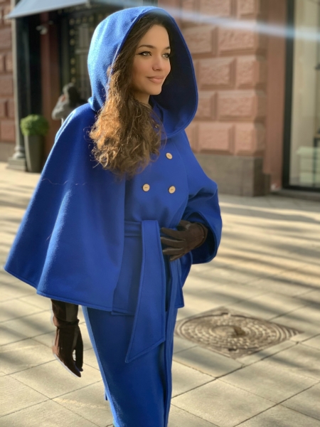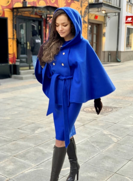 Пончо - многофункциональная и практичная модель. Прекрасно сочетается с любыми предметами гардероба и не требует строгого соответствия размерному ряду. Детали: пончо выполнено из двухсторонней ткани - это делает его еще более теплым, двубортная застежка с фирменными пуговицами, пояс оригинального кроя.