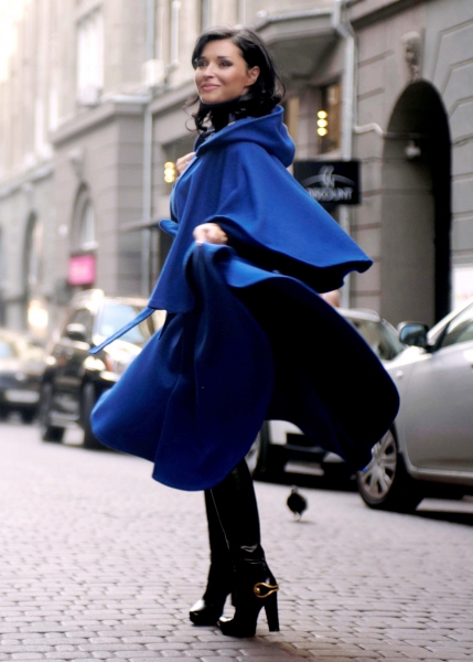 Пончо "Солнце" - многофункциональная и практичная модель. Прекрасно сочетается с любыми предметами гардероба и не требует строгого соответствия размерному ряду. Детали: двухсторонний капюшон, двубортная застежка на пуговицах, пояс оригинального кроя.