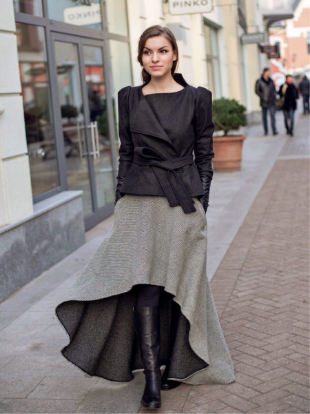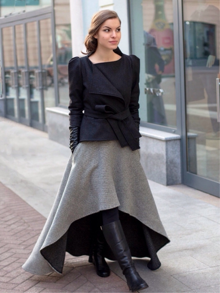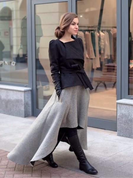 Оригинальный крой юбки создает легкий и летящий силуэт. Эта юбка не только украсит Вас, но и, благодаря уютному теплому материалу, согреет в прохладную погоду. Ограниченный тираж!